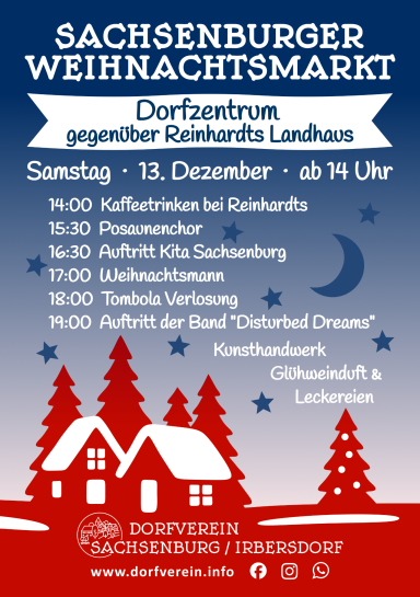 Eingängige und festliche Bilder aus unserem Vereinsleben. Diese Galerie präsentiert die schönsten Momente und Veranstaltungen, die wir gemeinsam erleben durften, sowie die Gemeinschaft, die uns verbindet. Lass dich von der Vielfalt und der Freude unserer gemeinsamen Aktivitäten inspirieren und erlebe die herzliche Atmosphäre, die unseren Dorfverein Sachsenburg / Irbersdorf e.V. prägt. Jedes Bild erzählt eine Geschichte und zeigt, wie wichtig unser Miteinander für die Dorfgemeinschaft ist. Ob bei Festen, Ausflügen oder sportlichen Veranstaltungen – die Bilder fangen die besten Augenblicke ein und laden dazu ein, Teil dieser wunderbaren Gemeinschaft zu werden.