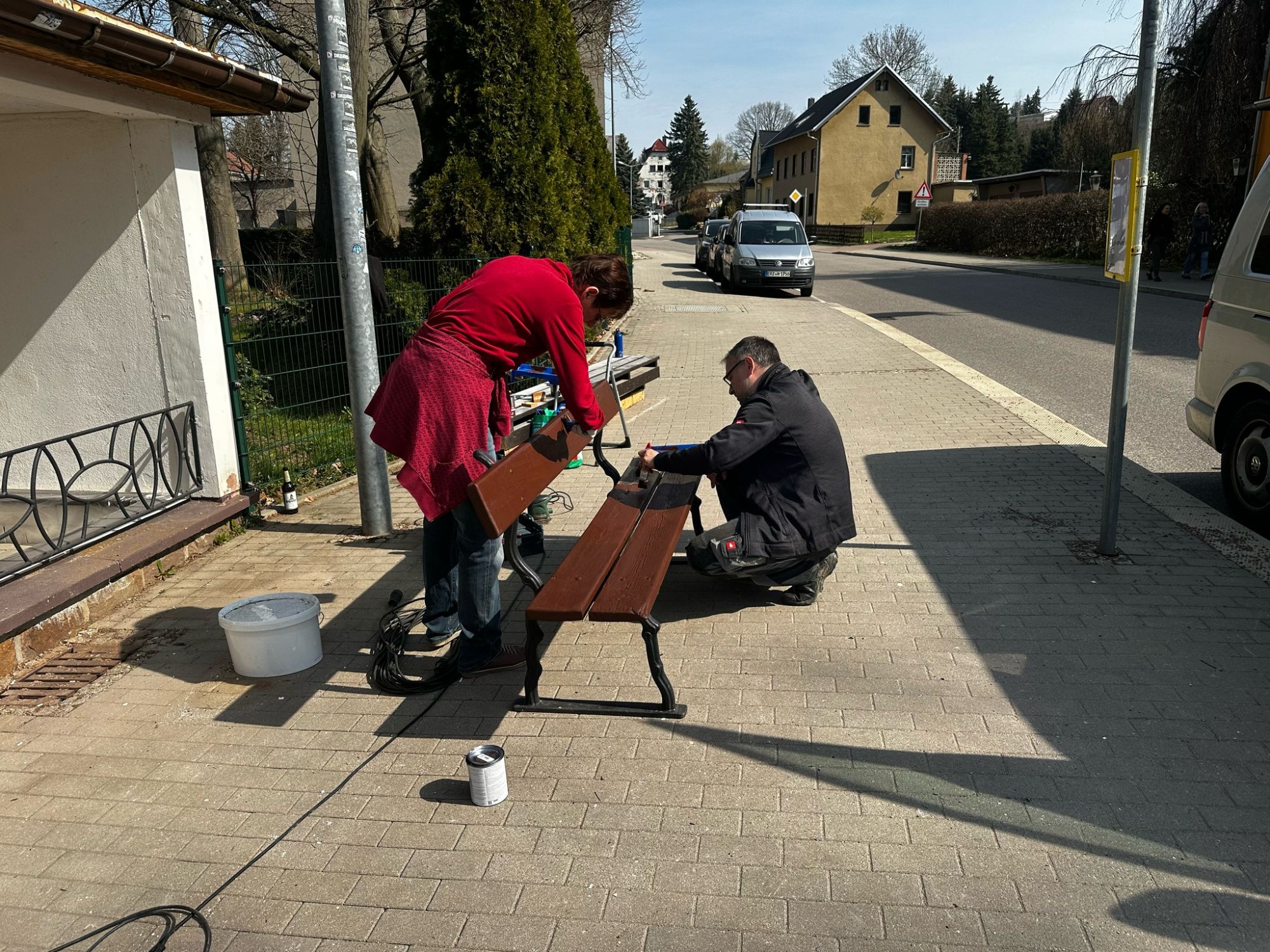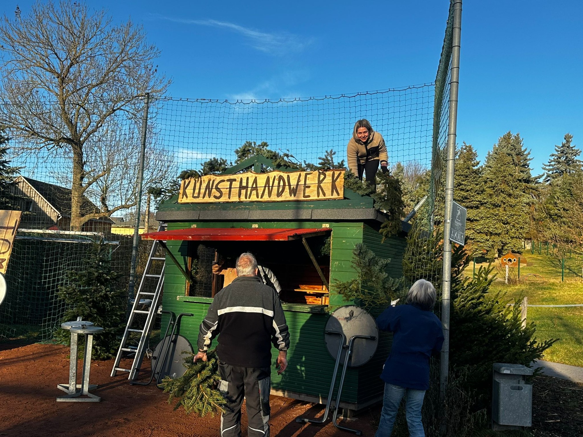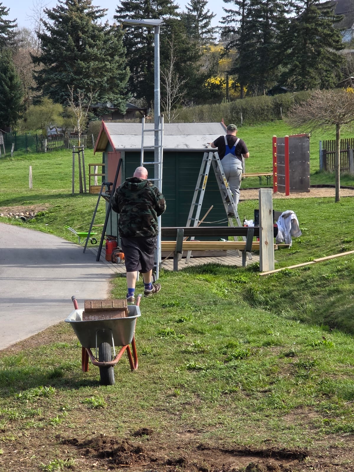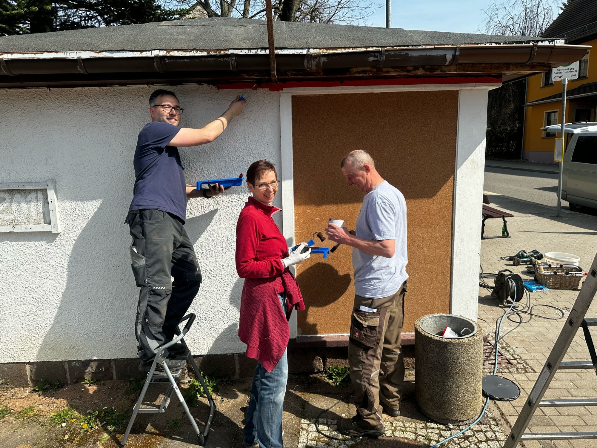 Die Seilrutsche wurde gespannt und erstmals erfolgreich getestet, die Schloßbergauffahrten von Unrat befreit, und das Buswartehäuschen am Abzweig Irbersdorf bekam seinen ersten Anstrich für das neue Wandgemälde.