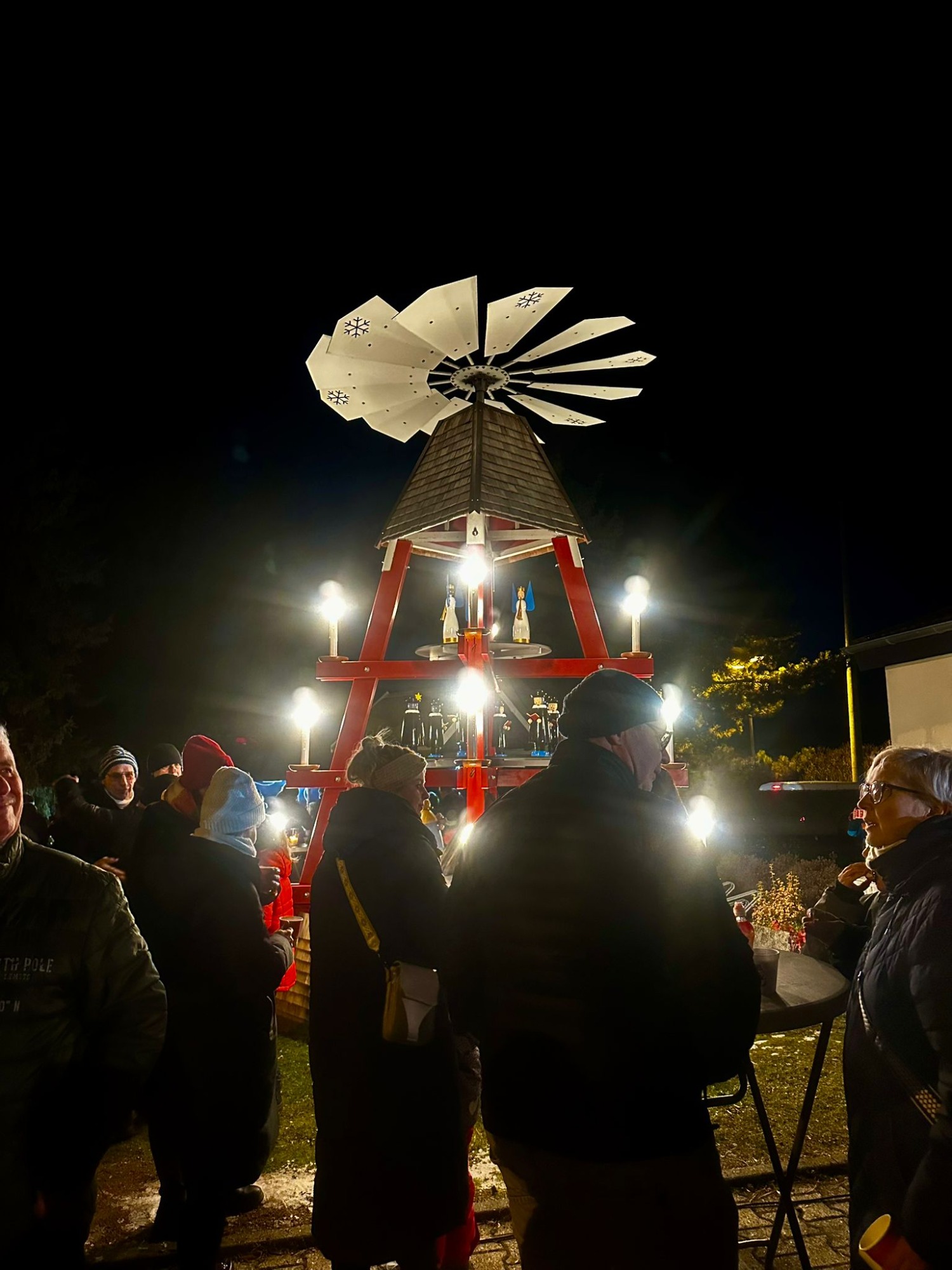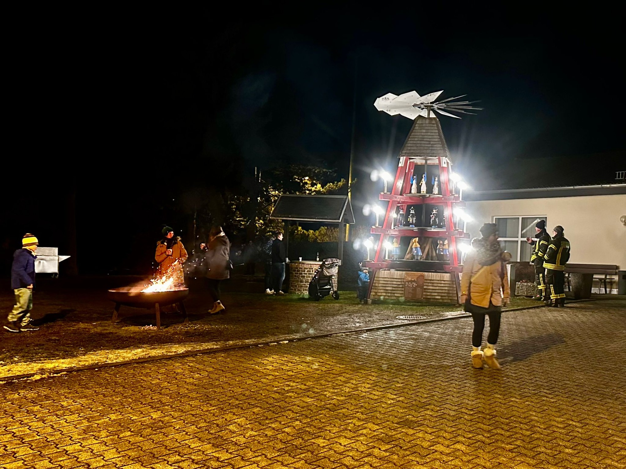 Am Feuerwehrgerätehaus kamen Dorfgemeinschaft, Verein und Gäste bei Glühwein, Liedern und gemütlichem Beisammensein zusammen. Die frisch überarbeitete Pyramide erstrahlte dabei in neuem Glanz und sorgte für einen stimmungsvollen Start in die Vorweihnachtszeit.