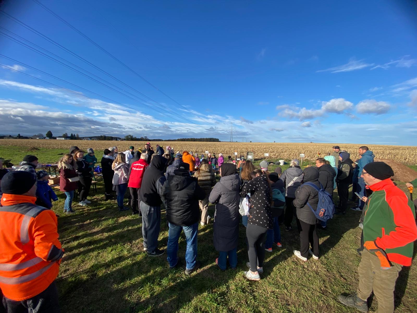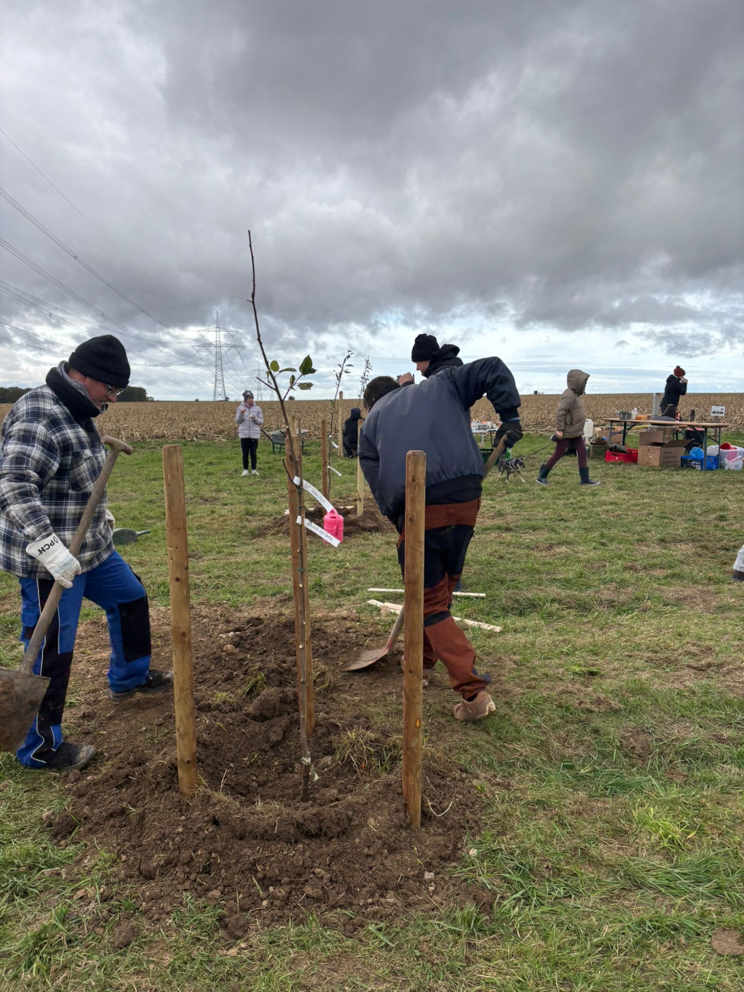 Strahlender Himmel, gute Laune und über 50 frisch gepflanzte Apfelbäume alter Sorten – unsere neue Streuobstwiese steht!